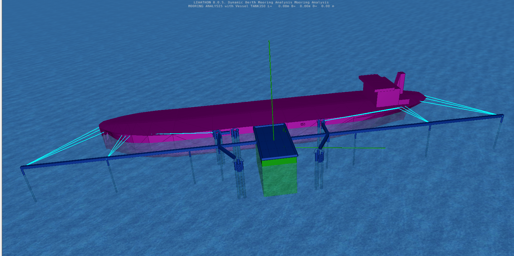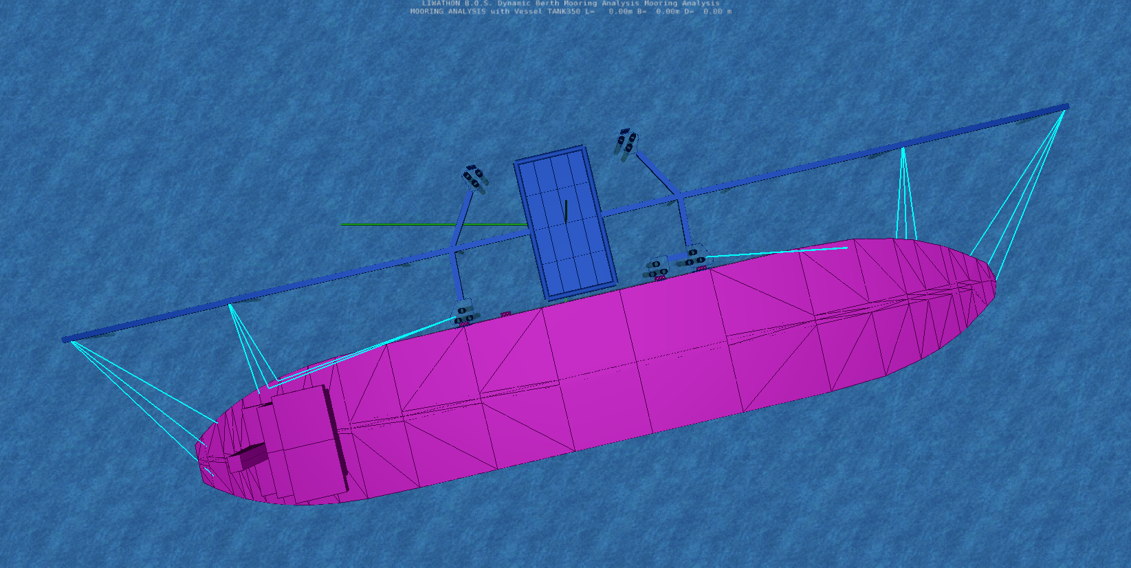 - Designing and analysis 32 mooring arrangements each at two drafts
